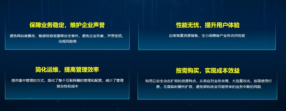 信息港云边缘安全中心是基于运营商全球分布的海量边缘资源,为用户及设备提供安全、快速、私密和高可用的安全智能边缘网,提供动静态加速、应用加速,大流量DDoS攻击清洗和Waf防护能力,提供以身份认证与动态信任为基础的企业远程访问,同时还可通过边缘程序将应用和服务快速部署到全部边缘节点上,快速、安全地服务用户。