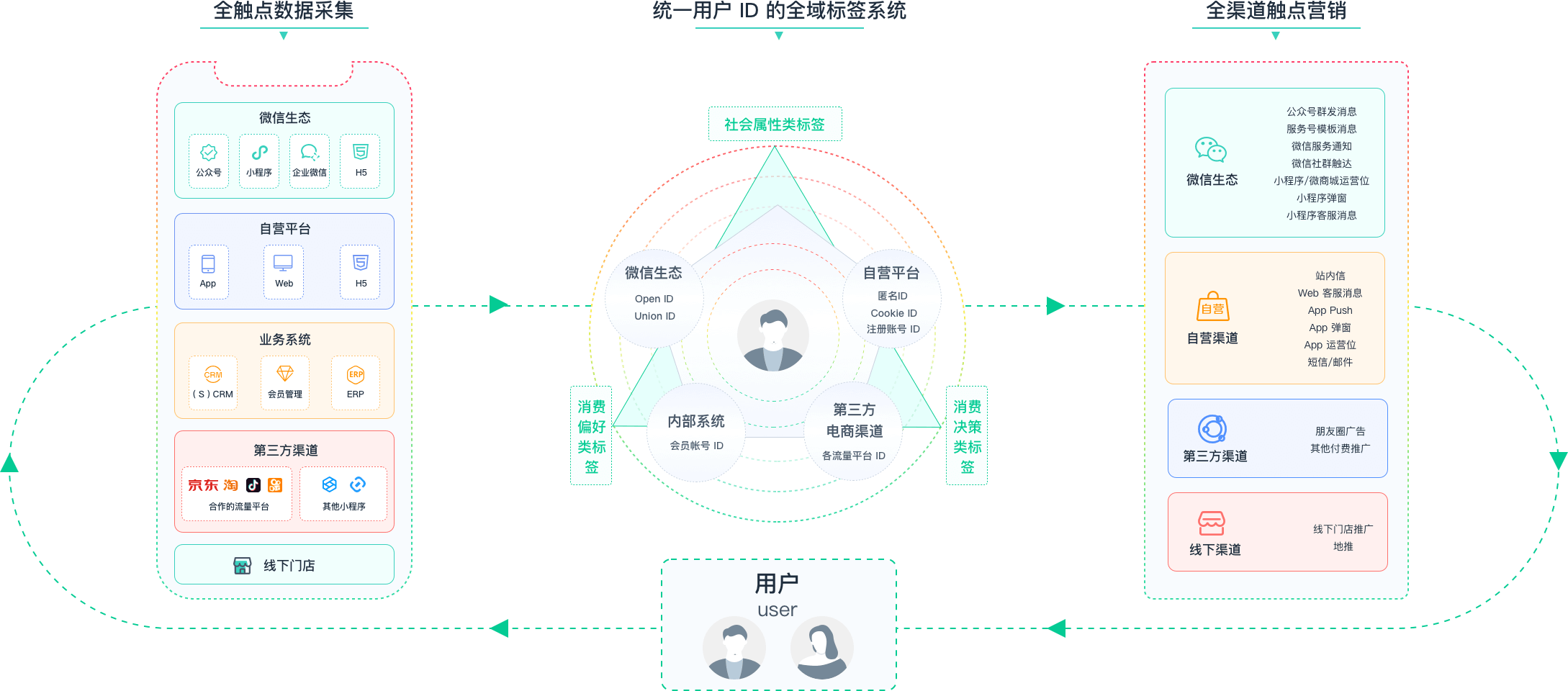 数字营销云是覆盖公域私域、线上线下的全场景的数字化营销平台。基于全触点数据构建全域标签体系,助力企业在自营平台、微信牛态等全渠道上精伸触达用户.自动化营销互动.,实时反馈效果,真正实现营销数字化。
