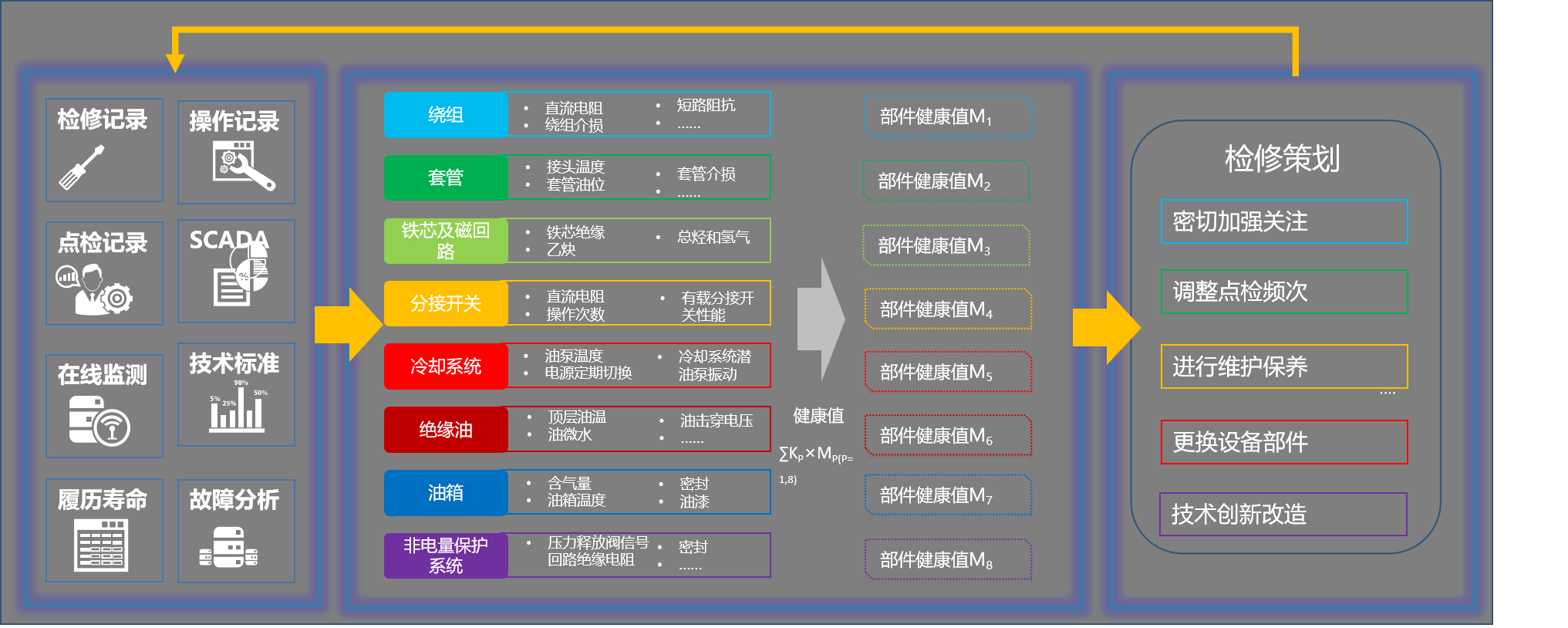 通过IT技术与OT技术深度融合,实现设备运维海量数据的实时采集,建立设备健康值模型,利用赛意工业互联网平台“大脑”的数据组织、分析能力,根据设备健康状态实施不同的检修策略,通过数据驱动检修业务的合理化、高效化,实现活起来的PDCA循环。