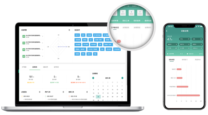 基于设备计划性养护,实现养护标准、养护计划、养护工单全流程数字化体系。通过物联网数据,实现设备备件寿命监测,降低设备运维成本。