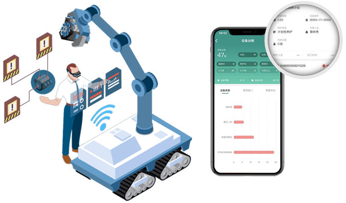 围绕设备履历、基础档案、设备图册、养护记录、点检记录、维修履历、预警记录、设备OEE、设备稼动率、设备CPK分析、MTBF、MTBR等。