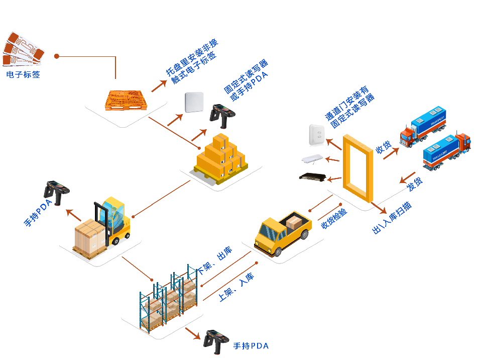 通过RFID标签智能化高效管理仓库操作环节,对货品及库位信息自动复核,避免人工操作的误差,数据信息精确。